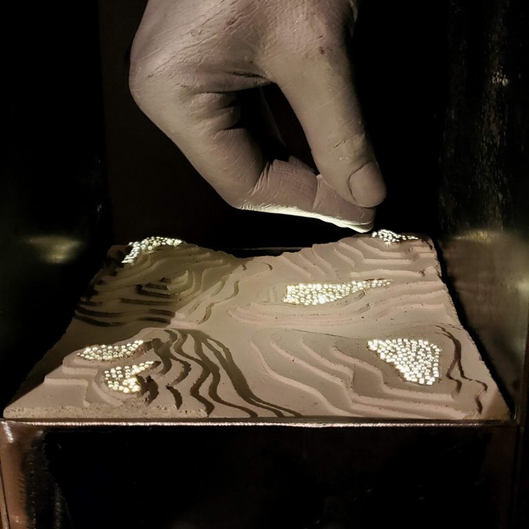 6″ x 6″ x 24″Aluminum, concrete, fiber optic filament, LED lights, steel, cotton floss At the moment, art-making isn’t my full-time job. I work for the University of Alaska Fairbanks. This past summer UAF declared financial exigency due to state…